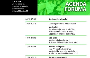 Generalni pokrovitelj “Foruma mladih je Visoka škola za poslovnu ekonomiju i preduzetništvo.
